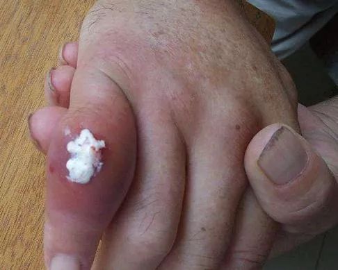 总之,血尿酸浓度越高,发生痛风石的机会越大。痛风石逐渐增大后,其外表皮肤可能变薄溃破,形成瘘管,排出白色粉笔屑样的尿酸盐结晶物,经久不愈。痛风石太大严重影响行动只能通过手术取出来。