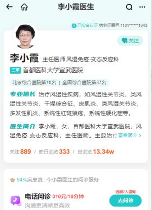 作为国内风湿免疫科知名专家,李小霞教授从事临床工作30余年,并兼职从事风湿性疾病的临床、教学及科研工作。
