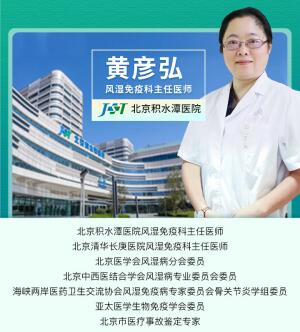 黄彦弘,主任医师,1987年毕业于华西医科大学,先后在301医院、北京协和医院、北京大学附属人民医院等国内顶尖三甲名院进修学习,曾作为核心主任医师于北京积水潭医院风湿免疫科就职20余年,后作为骨干医师加入清华大学附属北京清华长庚医院风湿免疫科。