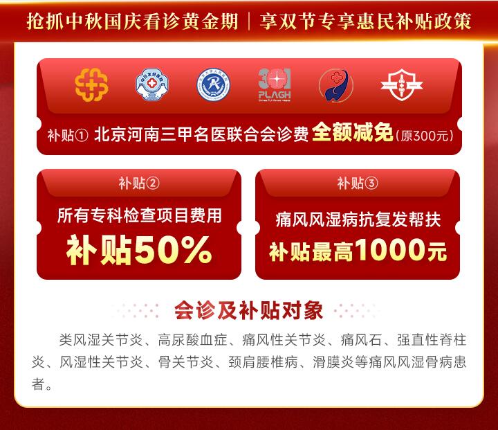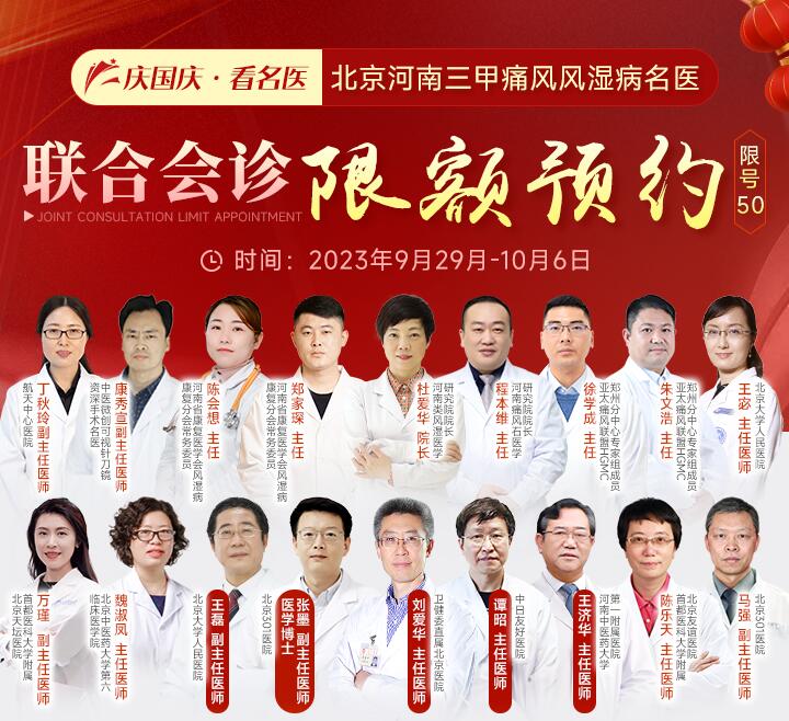 京豫9院18位三甲名医中秋国庆8天在郑州痛风风湿病医院会诊
