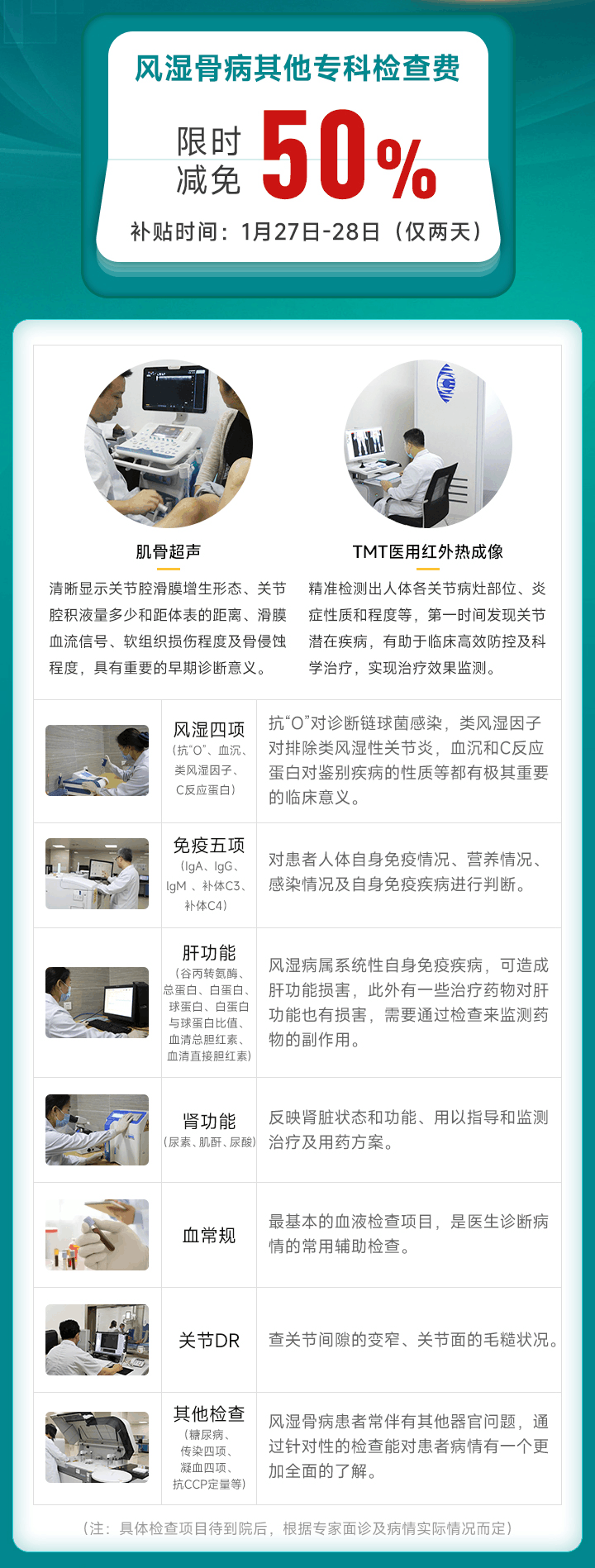 痛风/风湿骨病其他专科检查能够明确痛风、风湿病患者代谢失衡、免疫紊乱的原因,病情分期分型等,为专家们制定个体规范化诊疗方案提供精准依据。