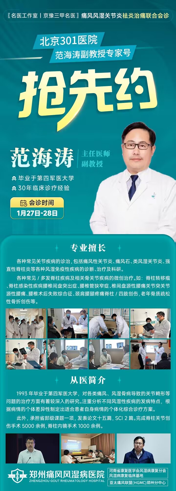 1.27-1.28!北京三甲教授来郑州痛风风湿病医院亲诊,痛风风湿病患者速约!